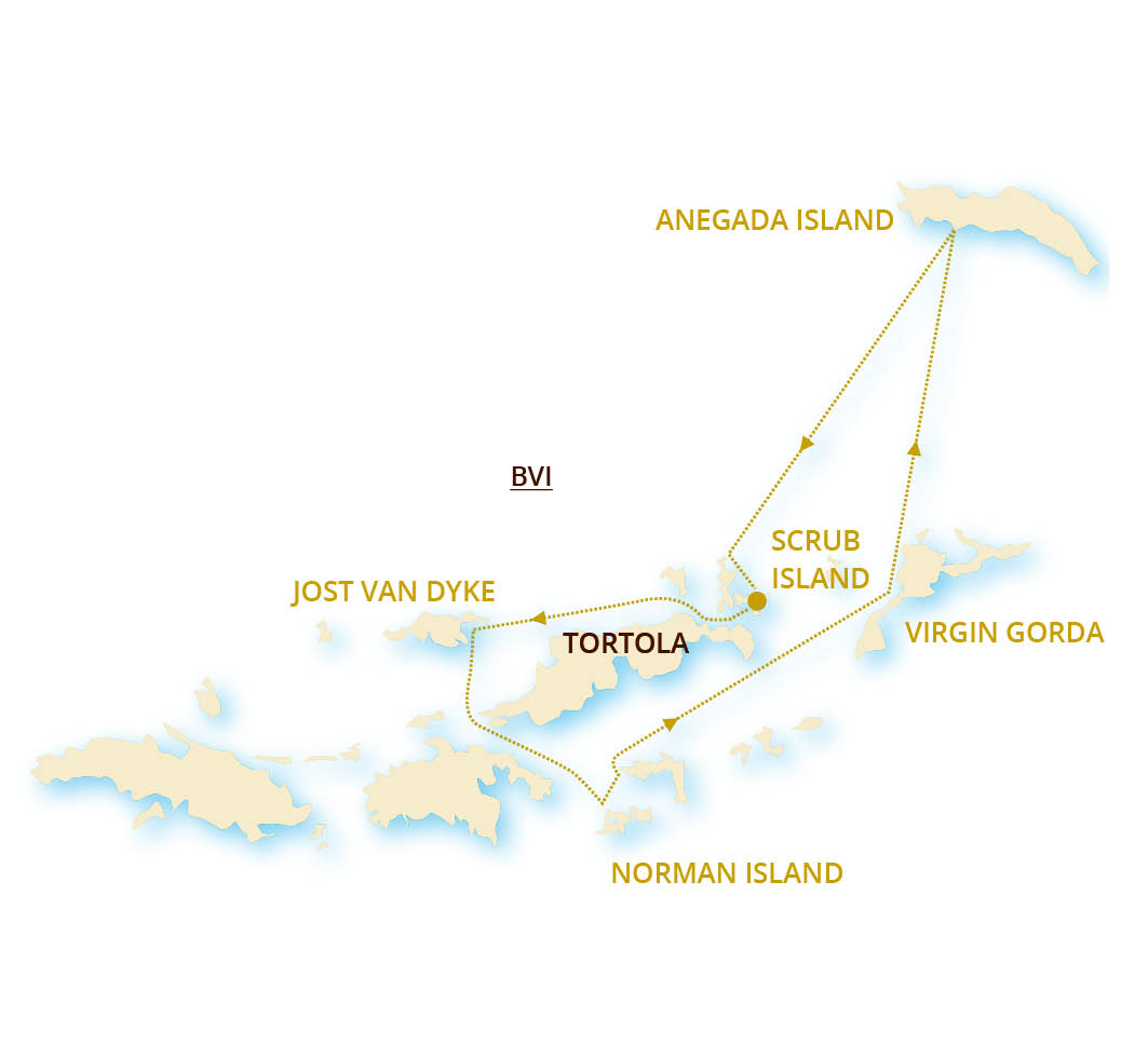 L’archipel des Iles Vierges Britanniques (British Virgin Islands B.V.I) découvert par Christophe Colomb, compte 4 îles principales : Tortola, Virgin Gorda, Anegada et Jost Van Dyke auxquelles s’ajoutent une quarantaine de petits îlots. Notre croisière à bord d’un catamaran de dernière génération vous fera découvrir les merveilles de ces îles. Lézards, singes, faucons, colibris peuplent la dense forêt tropicale de Tortola, où acajous, manguiers et cocotiers sont rois. Du côté de la faune sous-marine, une impressionnante quantité de poissons nage à proximité du récif corallien. Des plages de sable blanc à vous couper le souffle et des eaux cristallines vous attendent !